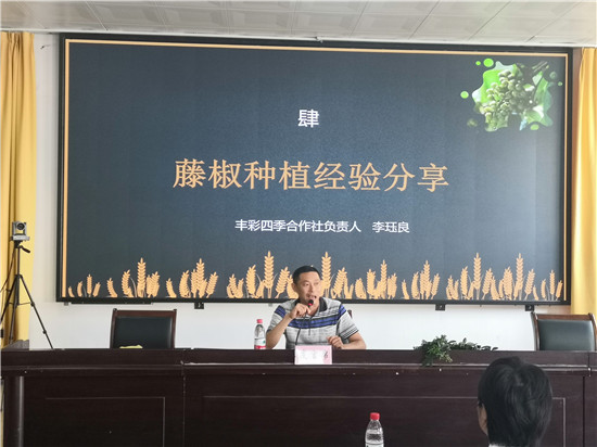 2020年6月,在县联社的指导下,洪雅县丰采四季种植专业合作社正式成立,由李珏良担任理事长。合作社采用“企业+合作社+农户+基地”产业结构模式,面向全县种植户免费提供藤椒收购一条龙服务,解决农户销售和运输难题。而李珏良及特邀专家也定期开展技术培训,分享藤椒种植经验,提高农户种植水平。