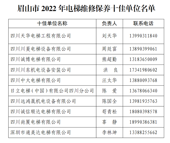 四川新闻网消息 为提升眉山市电梯维保行业整体服务水平,为人民群众提供方便、放心、安全的乘梯环境,眉山市市场监管局综合评选出10家维保效果好、投诉举报少、群众满意度高、电梯检验合格率高、具有行业标杆效应的电梯维保单位,以树立行业先进典型,方便群众择优选择。