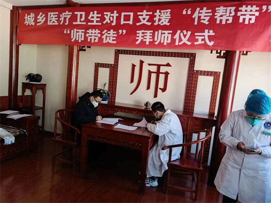 四川新闻网消息 为落实《四川省卫生健康委员会关于印发〈城乡医疗卫生对口支援“传帮带”工作方案(2022-2025年)〉的通知》精神,1月4日,九三学社东坡区基层委员会副主委、眉山市中医院副主任中医师岳宗相和入社积极分子何岳义到阿坝州小金县开展2023年城乡医疗卫生对口支援“传帮带”工作,并在小金县中藏医院举行“师带徒”拜师仪式。