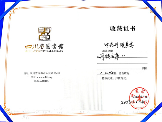 “这套《丹棱文库》展现出了丹棱厚重的历史文化底蕴,充分体现了丹棱县对中国传统文化、三苏文化、大雅文化的重视,不仅有利于全市人民深入了解丹棱,感受丹棱文化,还有利于丰富图书馆的三苏文献馆藏资源,以及建设丹棱具有地域特色文化的重要史料价值和现实意义。”眉山市图书馆文献资源部主任余菊容在收到该套《丹棱文库》后表示,图书馆将用心珍藏,尽快对这批图书进行上架,让更多市民能更好的了解丹棱。