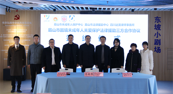 四川新闻网消息 1月13日,眉山市法律援助中心、眉山市未成年人保护中心、四川达宽律师事务所签署了《眉山市困境未成年人关爱保护法律援助三方合作协议》。市司法局党委委员、副局长牟锐,市民政局党组成员、副局长苏品文,以及市司法局、市民政局、四川达宽律师事务所有关同志参加了签约仪式。
