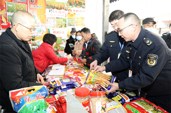 当天上午,李洪伦忙着给农户推荐大春作物种子时,丹棱县农业农村局执法大队队员伍宇翼等人来到店铺上,开展农资安全执法检查。经过一番检查核验,执法队员给老板叮嘱了一些采购注意事项后,他们又给现场购买种子的群众上起了辨识真伪农资的小课堂。