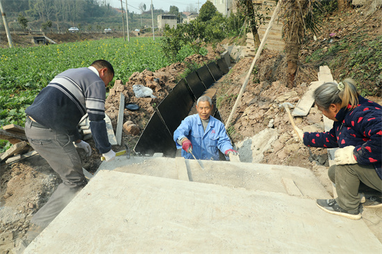 “这条沟渠贯穿里仁社区,有两千多米长,以前是土沟,渗水严重,无法满足群众灌溉需求。现在我们正在加紧实施水渠硬化工程,确保在3月底以前全面完工,不耽误4月份群众插秧用水。”2月5日下午,在丹棱县仁美镇里仁社区,一条贯穿全村农田的水渠正在加紧实施“三面光”改造,该项目通过以工代赈方式不但解决了群众灌溉用水问题,还能让当地务工群众有一笔劳务收入。