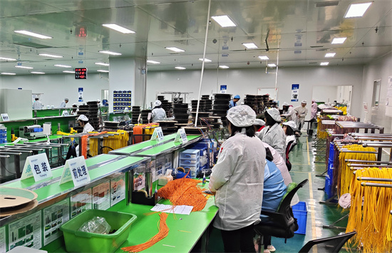 2月5日,在洪雅经开区嘉万光通信有限公司生产车间,机声隆隆,6条生产线满负荷运转。