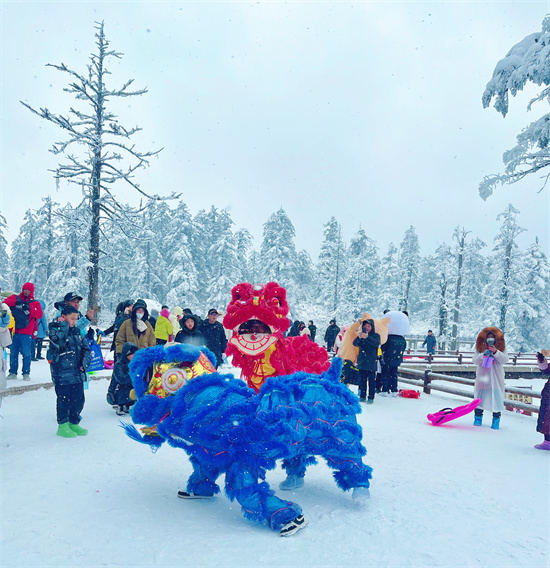 而在瓦屋山景区,“云雾缭绕似仙境,银装素裹美如画。”春节假期,吸引了八方游客来赴冰雪之约。该景区还特别策划推出传统舞狮、青羌舞蹈、萌宠巡游等特色活动表演,为游客带来欢乐喜庆、幸福感满满的旅游体验。
