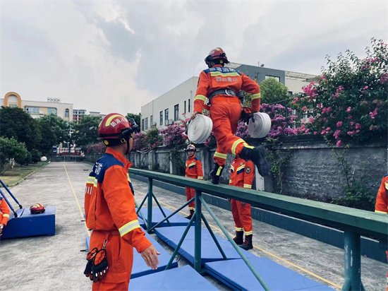 “在队伍的训练上,我们大队坚持一切从实战出发,立足‘管’的职责定位,通过支部统筹,实现补短;思想引领,克服厌训;营造氛围,挑战自我这三个方面来提升队员战斗力。”丹棱县消防救援大队政治教导员黄兵介绍道,2022年,该县消防救援大队按照“先推演后实战”的模式,组织举行各类型灾害事故实兵实装实战演练45次,开展现场点评、岗位交叉互评,推动演练向实战聚焦。改进战评作风、模式、内容,加强对典型战例进行集中复盘讲评,以讲代训,以评促战,队伍“思战、研战、谋战”氛围浓厚。