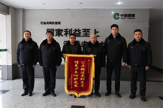 四川新闻网消息 2月15日,眉山电子职业技术学校向眉山市洪雅县烟草专卖局赠送“公正执法尽职尽责,情系少年呵护成长”锦旗,感谢洪雅县局解决向学生“挑竿售烟”乱象、净化校园周边环境、保护未成年人健康成长等方面作出的贡献。这是眉山烟草首次获赠学校致谢锦旗。