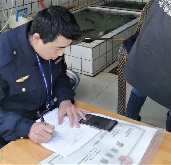 此次行动以人气较旺的餐馆、水产批发市场、农贸市场及流动摊贩为重点检查对象开展全面检查。一是加强餐饮经营单位水产品监管,查看餐饮经营单位是否存在不履行索证索票、进货查验、台账记录等行为,督促经营户落实主体责任,保障水产品来源合法。二是加强农贸市场水产品检查,重点查看流动摊贩是否存在经营非法渔获物及其制品行为,不得加工销售野生鱼、河鱼,斩断市场销售产业链。三是加强禁捕宣传引导,查看广告语是否存在以“江鱼”“江鲜”“长江野生鱼”等为噱头开展虚假宣传行为,进一步强化禁捕知识宣传,营造水上不捕、市场不售、餐馆不做、群众不食的禁捕氛围。此次行动,共计检查餐饮经营户15户,水产品经营户9户,农贸市场流动摊贩21户,发现问题线索3条。下一步,县市场监管局将继续推进“长江禁捕 打非断链”专项行动,使长江流域禁捕工作更加深入人心。
