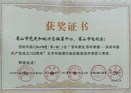 坚持资政育人,成果转化成效明显。《红心向党》获全省“百年辉煌 百年荣光”活动三等奖,系唯一获奖音频作品。微党课《重新安排山河 造福子孙后代——仁寿黑龙滩建设历史》评为全市“十佳”视频。选送的《眉山市大调解实践历程与启示》《中国共产党眉山地区历史(1997-2000)》《建设“天府新区增长极大都市区新高地”的眉山路径研究》《红色西山——青神革命斗争史纪实》党史成果分获全省党史部门2016—2020年科研成果论文类、著作类、资政成果类、影视音像作品类优秀成果奖。《眉山市开放发展的回顾与思考》获眉山市第十六次哲学社会科学优秀成果三等奖。