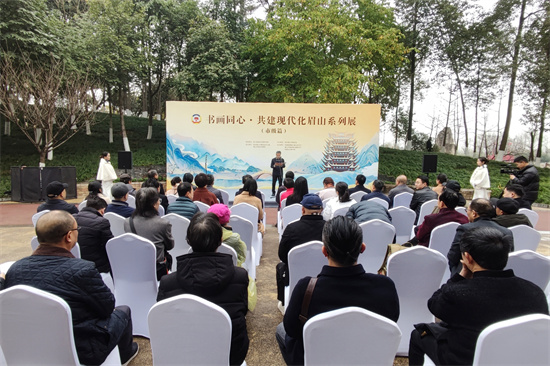 四川新闻网消息(周静 李田 摄影报道)3月1日,“书画同心·共建现代化眉山”系列书画展活动市级篇在眉山市政协书画院举行,市政协主席、党组书记黄剑东宣布开展。市政协副主席阳运良致辞。市政协秘书长胡建辉主持开展仪式。