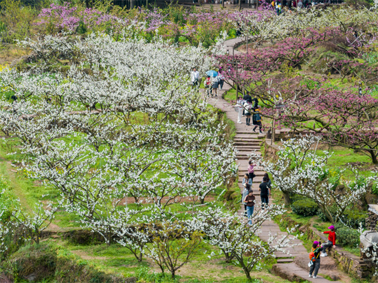 阳春三月,幸福古村花开美如画。“丹棱游村·倾橙时光”春游系列活动亦如期在此拉开序幕。身穿汉服的嘉宾和游客在桃花、李花丛中一同游园赏春,一路打卡村口、松鼠峡、幸福市集,再过赵桥、穿过夫妻广场,到达幸福书坊,沉浸式体验村落古韵。