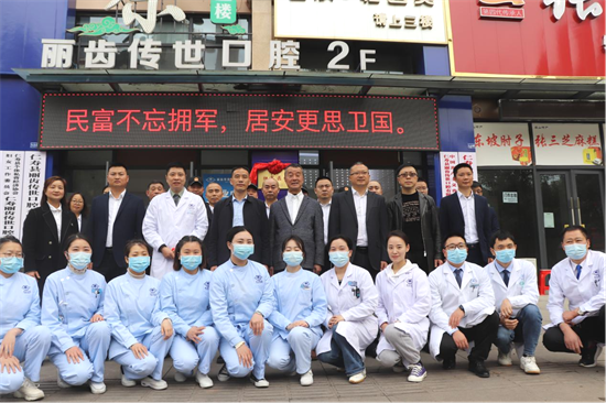 在挂牌仪式上,腾飞屹阳酒店董事长邓宁东和丽齿传世口腔医院院长张权都表示:既是荣誉,更是责任和担当,一定以“服务大众,回报社会”为服务理念,以“拥军优属”为企业名片,争当新时代拥军强军团队先驱者,主动承担拥军优属的崇高使命,为巩固和提升军政军民团结良好局面做出贡献。