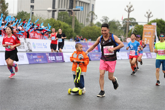 带着子女畅跑的张先生推着儿子和滑板车吸引了不少市民的拍照,张先生表示,“仁马”自己已经参加了两届,今天带着儿子一起来感受万人畅跑的魅力,真切的感受“生命在于运动”的意义,也让子女感受运动带来的快乐。