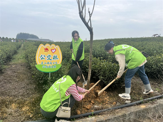 四川新闻网消息 春风催新绿,植树正当时。近日,眉山市展通公交公司团支部携手眉山团市委、东坡区团委前往东坡区黄金茶产业园基地,开展“青春志愿·绿色同行”植树节志愿服务活动。