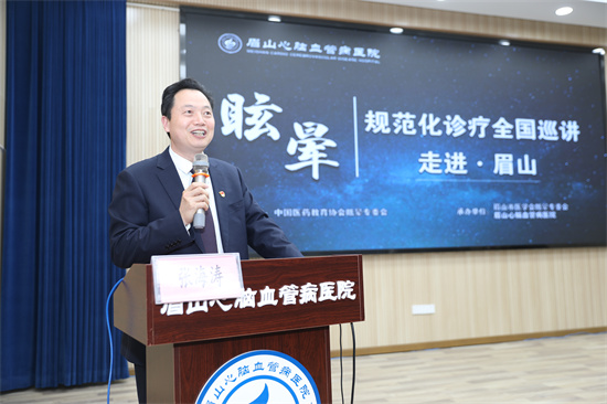 活动当天,省内外各级医疗机构从事神经内科、心内科、耳鼻喉科等相关人员200余人来到现场,2000余人通过线上直播方式参与。眉山市医学会会长赵平出席会议并讲话,眉山心脑血管病医院院长何娟在会上致辞。