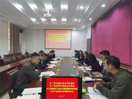 四川新闻网消息 为进一步推动成渝地区双城经济圈建设,助力制造强省、制造强市战略落地,3月20日—21日,九三学社眉山市委专职副主委兼秘书长曹水桂一行5人赴重庆永川区就两地制造业协同发展开展专题调研。九三学社重庆市永川区委主委、区政协副主席张前勇出席调研,副主委刘晓红、杜成章等陪同调研。