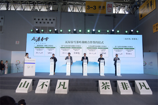 此届茶博会汇聚了国内外近2000家企业参展。全省11个茶叶主产市、30个产茶重点县,国家级、省级茶叶龙头企业全部参展。作为中国十大生态产茶县、茶业科技助农示范县、连续四年荣获“中国茶业百强县”的洪雅县,也带来精致川茶“瓦屋春雪”,精彩亮相茶博会,并成功举办“山不凡·茶非凡——‘瓦屋春雪’茶叶产品推介会暨战略合作签约仪式”。