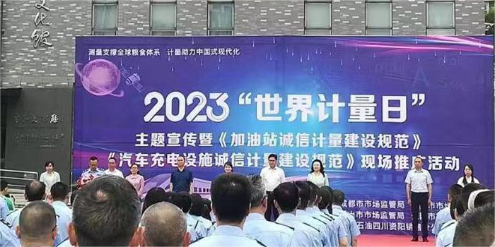 为推动成德眉资计量事业和经济社会高质量发展,成德眉资四市市场监管局共同举办2023年“世界计量日”主题宣传暨《加油站诚信计量建设规范》《汽车公用充电设施诚信计量建设规范》现场推广活动。活动现场,商业企业代表和电动充电桩经营企业上台分别在启动仪式上作出诚信计量承诺,与会嘉宾和群众共同参与了诚信签名仪式和《加油站诚信计量建设规范》《汽车公用充电设施诚信计量建设规范》现场体验活动。