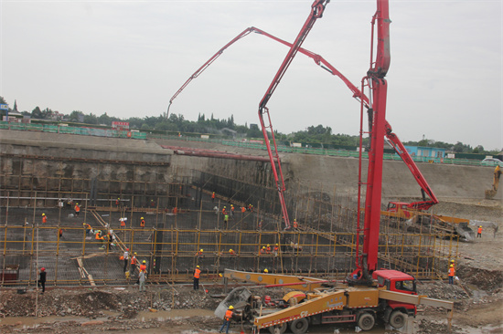 四川新闻网消息(马永祥 郑佳洁 摄影报道) 6月1日,由中铁十七局承建的眉山城市新中心停车场项目施工现场,项目首组基础底板混凝土顺利浇筑完成,标志着项目主体工程建设正式进入了攻坚阶段。