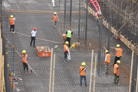为确保首组基础底板顺利浇筑,项目先后克服作业场地狭小,高温天气,地质条件复杂,基坑变形控制标准高,主体结构底板钢筋体量大、绑扎难度高等诸多困难,制定合理施工计划,按期顺利完成首块底板混凝土浇筑任务。