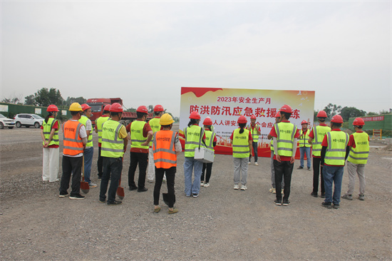 四川新闻网消息 6月14日上午,中铁十七局集团太和片区城乡一体化建设工程EPC项目部以“安全生产月”为契机在承建的双凤街施工现场组织项目全体人员开展防洪防汛应急救援演练,切实做好“防大汛、抗大洪、抢大险、救大灾”的各项准备工作,全面提升应急抢险队伍综合反应能力,加强人员配合、协同作战的能力,筑牢汛期安全生产防线。