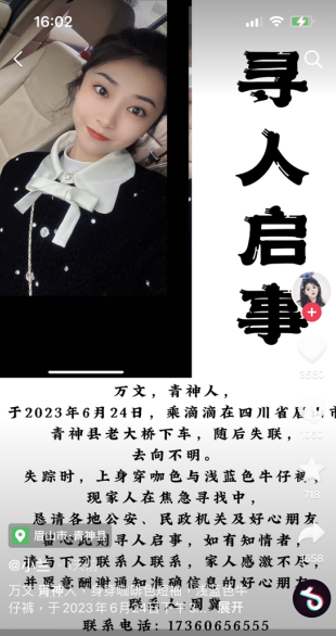 次日,关于万某寻人启事的消息显示,万某失踪时身穿咖色衣服与浅蓝色牛仔裤,其父表示万某轻度抑郁症,并呼吁各地公安机关、民政和好心朋友帮忙寻找,引发了网友的关注和关心。