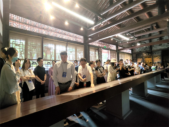 考察团一行首先来到“中国华侨国际文化交流基地”——三苏祠博物馆,漫步其中,一边参观一边认真聆听三苏父子的故事,在书香气息中了解苏氏家族的变迁史和成长史,沉浸式感受古祠风韵、文脉悠长,沉醉于博大精深的东坡文化,纷纷表示要做优秀传统文化的传承者和弘扬者。