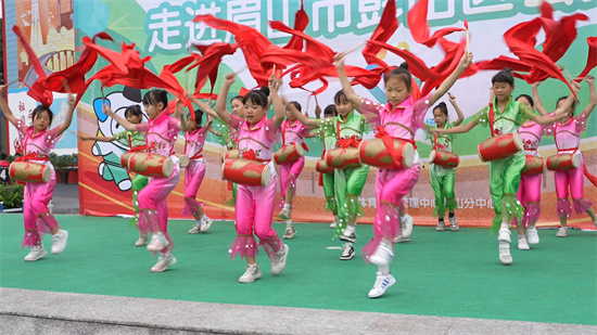 捐赠仪式后,公义小学的同学们进行了腰鼓表演。鼓声隆隆,舞姿翩翩。铿锵的鼓点,撞击着少年的心扉,激昂的旋律,敲出了欢乐与幸福。随后公义小学的同学们进行了一场酣畅淋漓的篮球比赛。