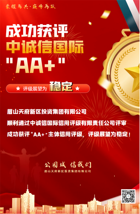 四川新闻网消息 6月27日,眉山天投集团顺利通过头部信用评级机构——中诚信国际信用评级有限责任公司评审,成功获评“AA+”主体信用评级,评级展望为稳定。