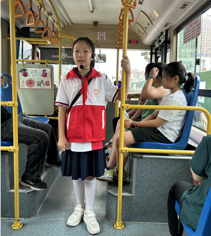 试运行期间,展通公交青年安全岗志愿服务队志愿者、苏洵小学红领巾志愿者、苏洵小学洵美志愿服务队家长志愿者、苏洵小学带队老师一起登上“青春号”公交车,开启了“听青说·流动讲解入民心”活动。在“青春号”车厢内,红领巾志愿者深情地讲解着“眉山城市故事”“途经站点、街道的历史底蕴”和“三苏故事”,乘客们认真聆听,并为红领巾志愿者的精彩讲述鼓掌喝彩,车窗外城市街景一幅幅地闪过,时间在这和谐美满的画面中飞逝,转眼间一天的讲解活动圆满结束。公司青年安全岗志愿服务队志愿者全程陪同,保障了红领巾志愿者安全,护航“青春号”运行。