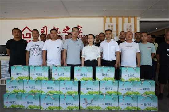 在彭山区的货车司机驿站,慰问组一行向30名货车司机代表赠送了装有防暑降温用品的“送清凉”礼盒,并叮嘱他们高温天气出行时一定要做好个人防护,注意防暑降温,安全驾驶,平安归来。