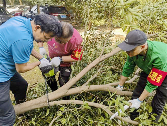 业务中心党支部党员在启明星花园为小区居民修剪树木