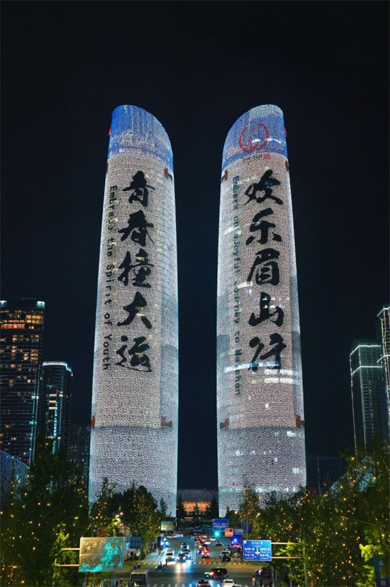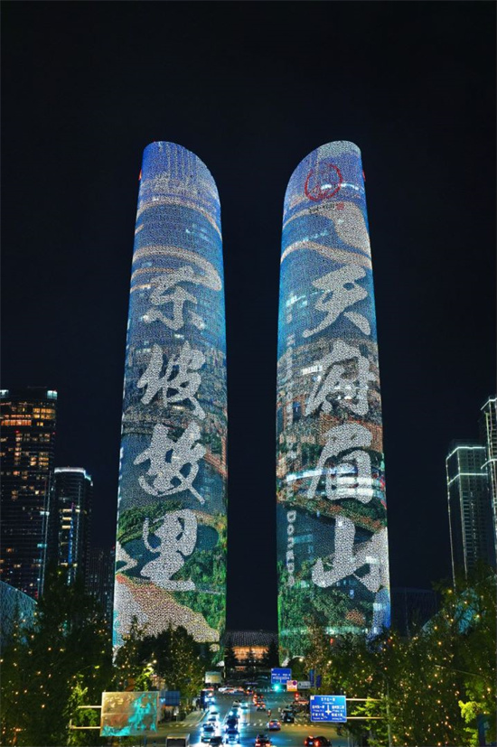 据悉,眉山是大运期间除成都外唯一在双子塔投放城市形象宣传片的城市。此次“青春撞大运 欢乐眉山行”形象展示将持续一周,期间在客流量最为密集的19:30—22:30集中滚动播出,不仅为广大市民游客们带来一场场活力四射的灯光视觉盛宴,也为人们走进眉山催生了更大的动力。