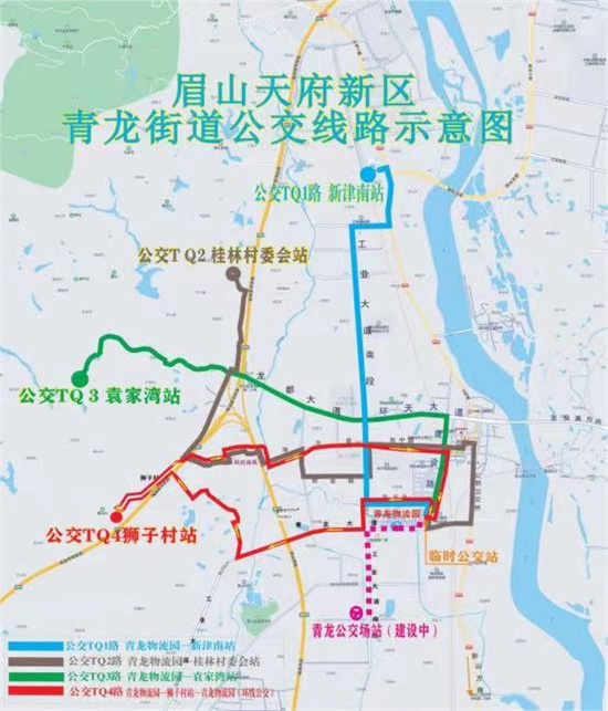 (三)停靠站点:青龙物流园(临时首发站)—天府龙城—公铁物流园区—青龙大道路口—青龙客运站—眉山天府新区青龙医院—苏宁路(下行单)—青龙党政服务中心—格力大道创业路口—格力大道海尔路口—同庆南风—狮子一组①号站—狮子一组②号站—麻溜塘—同乐村村委会—分水口—加工房—桂林村委会站。