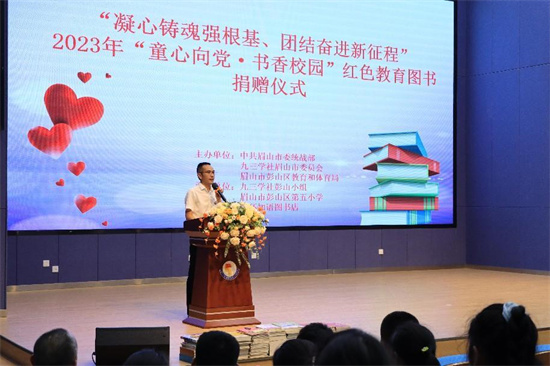 四川新闻网消息 9月6日,九三学社眉山市委联合琅环知语图书店在眉山市彭山区第五小学举办了“凝心铸魂强根基、团结奋进新征程”暨“童心向党·书香校园”红色教育图书捐赠活动。此举旨在进一步落实“凝心铸魂强根基、团结奋进新征程”主题教育,让广大中小学生了解中国革命光辉而又伟大的历程,弘扬爱国精神,与祖国共成长,做小小追梦人。