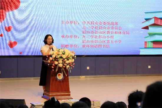 彭山区教育局帅锋副局长致感谢词指出,图书资料对于学生学习党史,树立爱党、爱国、爱社会的思想具有不可替代的作用,号召全体师生以书为伴,以书为友。