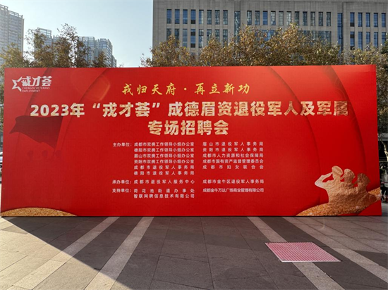 四川新闻网消息(郑佳洁)为充分赋能成德眉资同城化发展,建立健全成德眉资退役军人人力资源共享机制,大力弘扬全社会拥军优属、拥政爱民光荣传统。11月27日,由成德眉资四地双拥工作领导小组办公室、退役军人事务局联合成都市人力资源和社会保障局、成都市国有资产监督管理委员会、成都市妇女联合会共同主办,成都市退役军人服务中心、成都市金牛区退役军人事务局承办的2023年“戎才荟”成德眉资退役军人及军属专场招聘会在成都市金牛区万达广场举办。