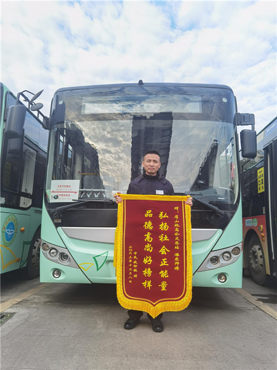 失而复得的感激之情难以言表,失主钱女士特地送来一面锦旗表示感谢:“公交驾驶员的责任感令我非常钦佩,您的行为是社会正面的榜样,也是社会公德的典范”。