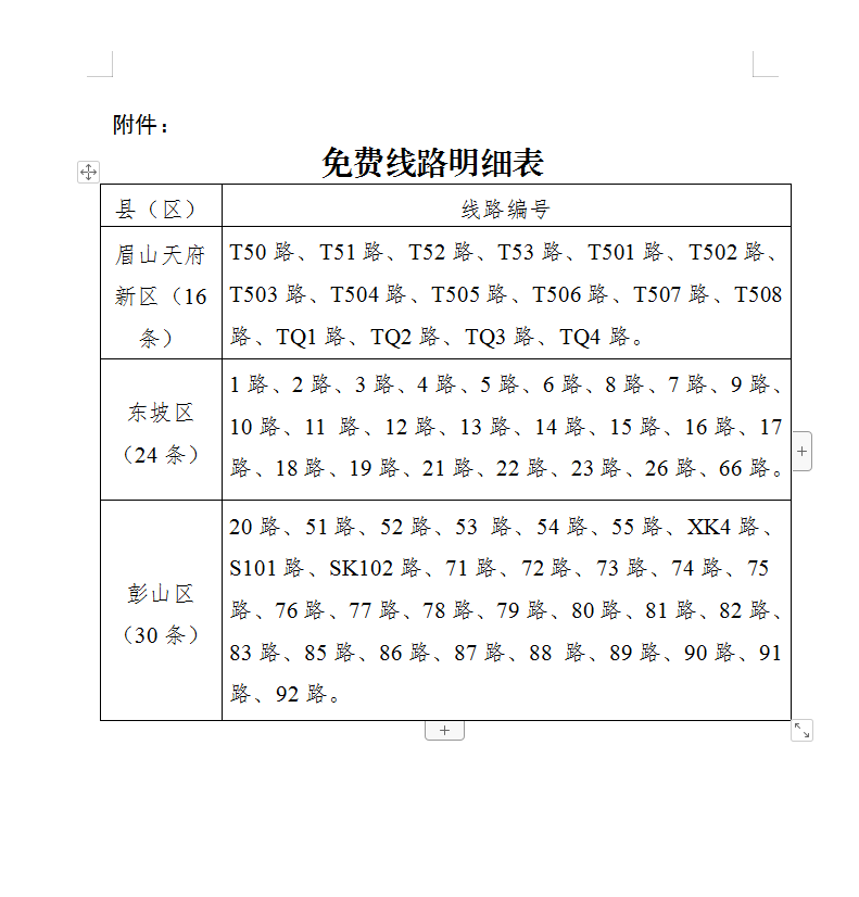 四川新闻网消息(郑佳洁)今(26)日,本网从眉山市交通运输局获悉,为有效应对重污染天气,倡导绿色低碳出行,缓解交通压力,降低移动源污染排放,改善环境空气质量,按照市污染防治攻坚战领导小组办公室安排部署,自2023年12月27日0时起至2024年1月3日24时止,眉山市中心城区(东坡城区、彭山城区)和眉山天府新区范围内运行的70条公交线路将向广大市民免费,欢迎广大市民选择公交出行。