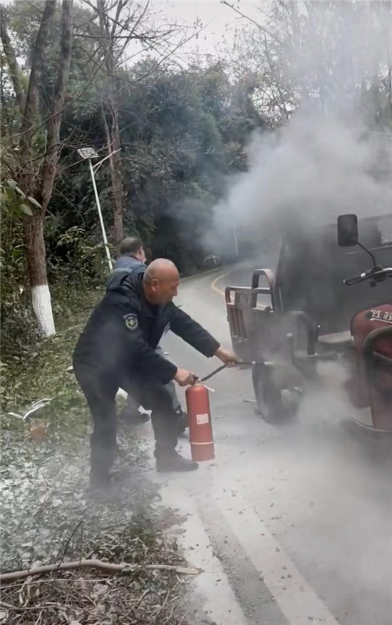 四川新闻网消息 12月25日,眉山市源达公交公司驾驶员张饶林驾驶公交76路在保胜乡黄沟路口时,突然发现对向车道有一辆电动三轮车正冒出滚滚浓烟,车主在一旁不知所措,焦急地向来往车辆和行人寻求帮助,张饶林见状立即将车安全停靠在站台处,向车内乘客解释说明后,迅速拎起随车配备的灭火器冲向着火点进行灭火,因火势较大,一罐喷完后火势还未完全熄灭,张师傅立即返回车内提起第二罐灭火器继续灭火。经过一番努力,火势得到有效控制,反复确认火势被彻底扑灭后,张饶林又默默返回岗位继续运营。