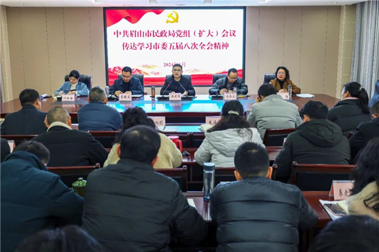 四川新闻网消息 1月2日,眉山市民政局召开党组中心组(扩大)学习会议,传达学习市委五届八次全会精神。眉山市民政局党组书记、局长王建祥主持会议并作工作部署,局党组成员、局机关各科室负责人、下属事业单位负责人参加会议。
