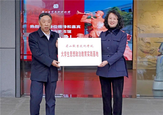代贤军向眉山市党史和方志馆授“眉山职业技术学院大学生思想政治教育实践基地”牌