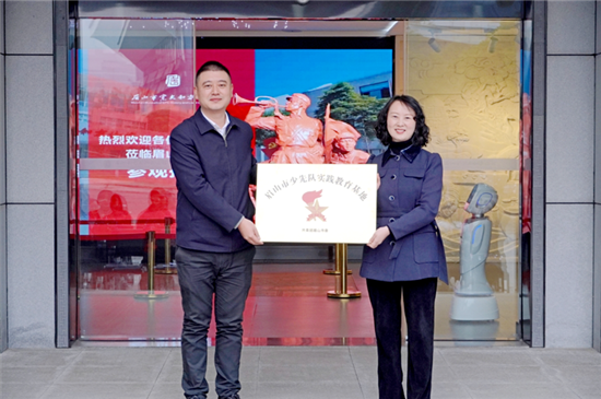 周浩为眉山市党史和方志馆授“眉山市少先队实践教育基地”牌