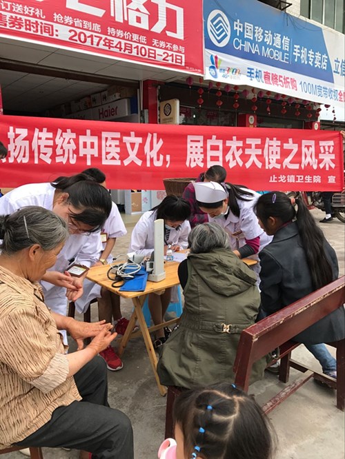 四川新闻网眉山5月10日讯(吴云霄 文/图)为深入开展中医药行业《中医药法》学习宣传活动,充分发挥《中医药法》在中医药行业全面依法治理中的基础作用,推动全行业提高法治意识,提高依法治理能力。借“5•12国际护士节”来临之际,5月10日洪雅县止戈镇卫生院7名医护人员在止戈镇场镇开展“弘扬传统中医文化,展白衣天使之风采”为主题的义诊活动。