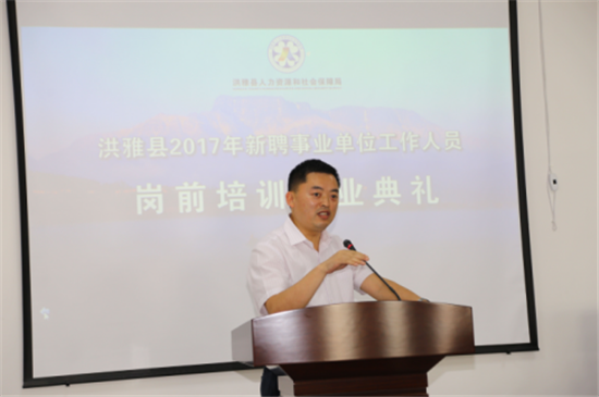 四川新闻网眉山5月28日讯(王霞 江美熹)近日,洪雅县2017年新聘事业单位工作人员岗前培训会,圆满结束。此次培训会,在县人社局社会保障大楼5楼会议室进行。这次培训为期5天,期间邀请县级事业单位7位业务骨干型领导向78名培训人员授课。培训内容就党风廉政建设和保密纪律、新闻舆论、洪雅旅游、依法行政、政务礼仪、安全和稳定、机关工作人员办文、办会、办事等7个针对性强、实用性高的课程进行系统讲解,旨在提高新聘人员的思想素质和工作能力,尽快为洪雅“一地三区”建设发光发热。