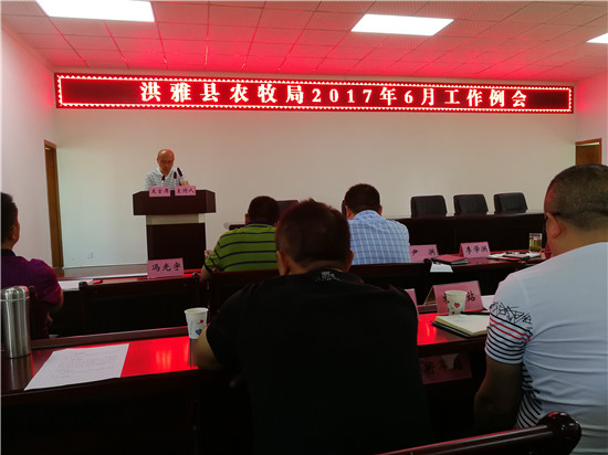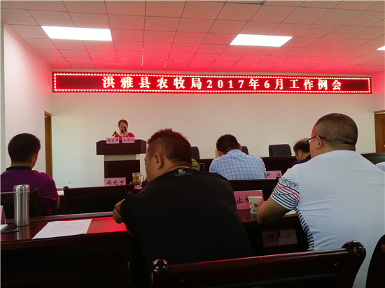 四川新闻网眉山6月5日讯(刘川丽 文/图)今(5)日,洪雅县农业和畜牧局召开6月工作例会,全体中层以上干部70余人参会。会上,各站股(所)负责人就5月份工作落实情况进行了总结,提出了6月的工作打算。各分管领导就分管工作进行盘点,强调了6月的工作内容、具体要求和主要做法。