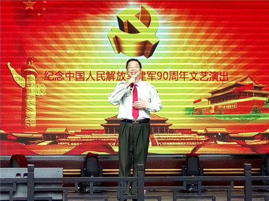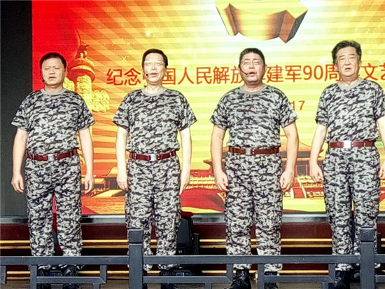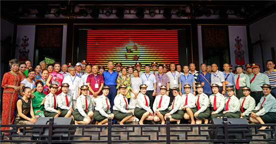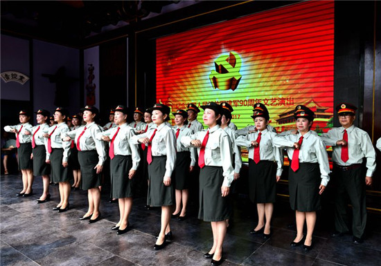 四川新闻网眉山7月16日讯(邱毅 吕伟利 摄影报道) “向前 向前 向前 ,我们的队伍向太阳,脚踏着祖国的大地……”一首首雄壮的军歌铿锵有力,一身身笔挺的军装飒爽英姿。在纪念中国人民解放军建军90周年之际,四川省陈毅研究会与红后艺术团7月15日来到山水洪雅止戈和平文化交流中心——寻梦花溪,为观众献上一台浓浓深情的军旅文艺节目。