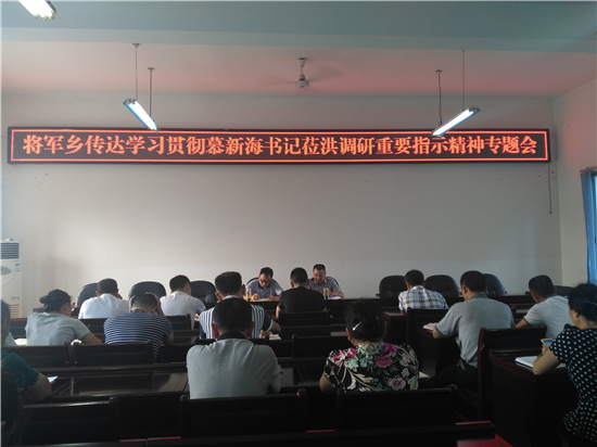 四川新闻网眉山7月19日讯(薛爱民 文/图)近日,洪雅县将军乡组织全体机关干部,召开传达学习贯彻眉山市委书记慕新海莅洪调研重要指示精神专题会议。