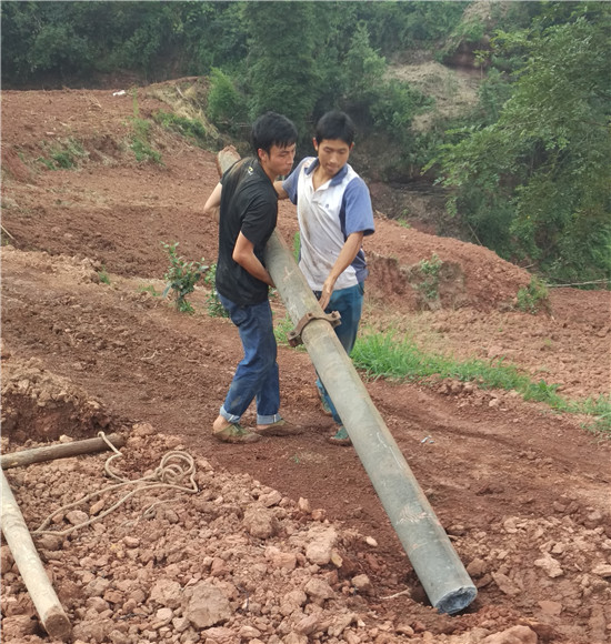 青年支部张治洪、王公伟冒着酷暑抬电线杆搭建遮阳网