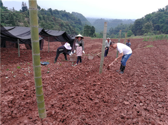 四川新闻网眉山7月20日讯(白贵洪 文/图)近日,洪雅县汉王乡王沟村药材种植协会苗圃基地热火朝天,一片繁忙的景象。为赶在雨季来临之前播下重楼种子,张治洪、王公伟等协会支部青年党员顶着烈日,带头苦干。在半个月时间内,协会就完成土地平整、施肥和遮阳网搭建,种苗培育基地初步成型。